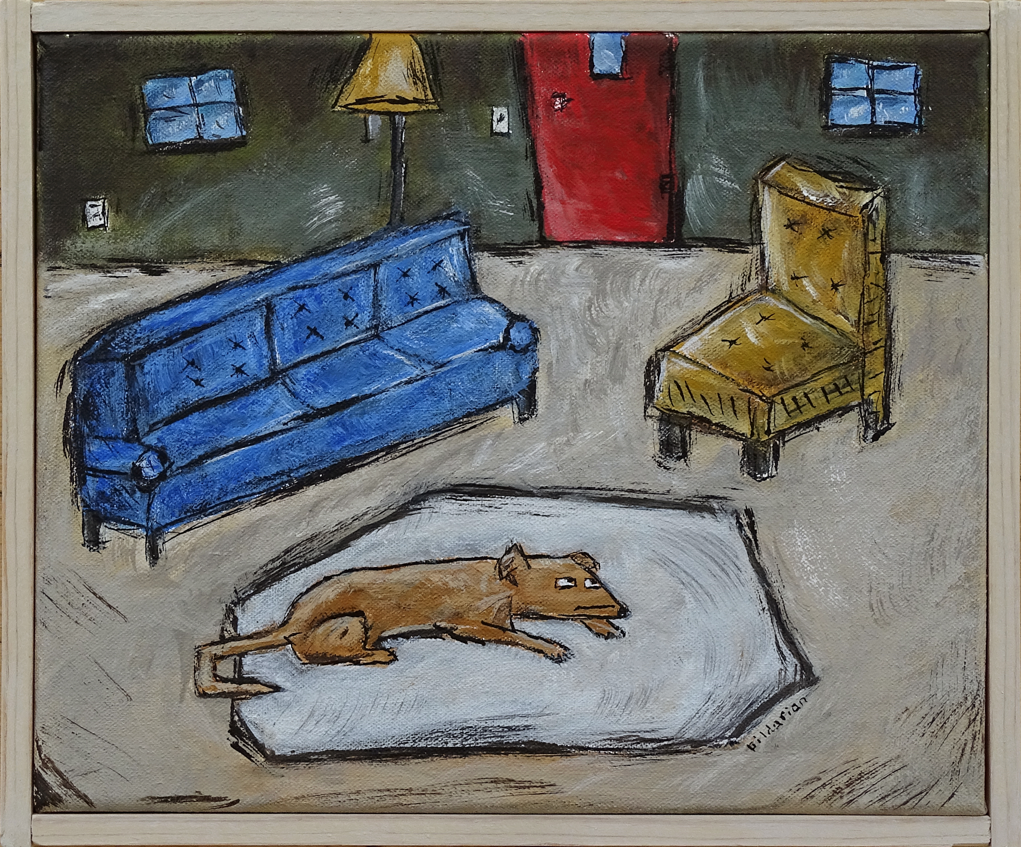 Dog in Window #16, oil on canvas, 20 x 20.” SOLD to Tim Rivera with a donation to Animal Care & Control of Philadelphia.