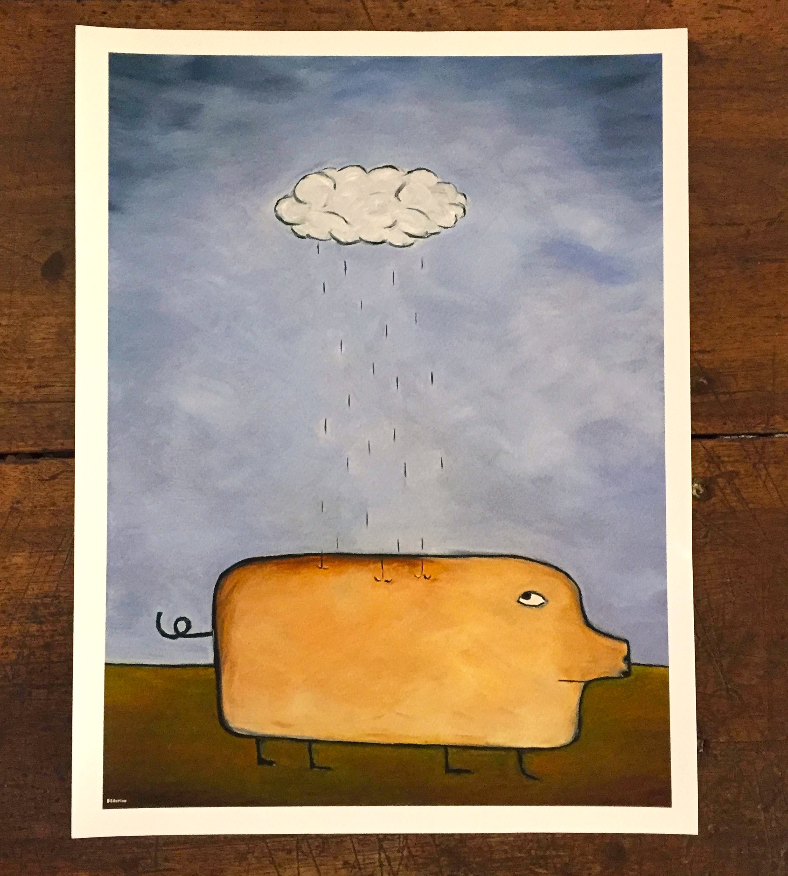 “Pig in Rain,” 9 x 12,” from a total run of fifty. $150 + shipping. ORDER PRINT